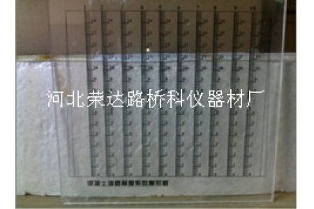 3、將梯形玻璃板放在試件劈裂面上,用尺測量十條線的滲水高度(精確至1mm)。
